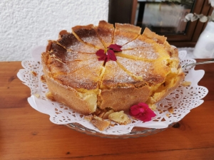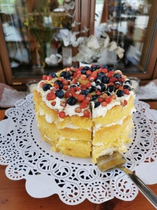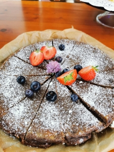 Aus dem Garten kommt das Obst und Gemüse für unsere Kuchen und Torten. Wir backen, was gerade Saison hat, frisch, handgemacht und mit eigener Handschrift. Die Getreidearten mahlen wir in unserer eigenen kleinen Mühle, denn frisch gemahlenes Getreide ist viel verträglicher.